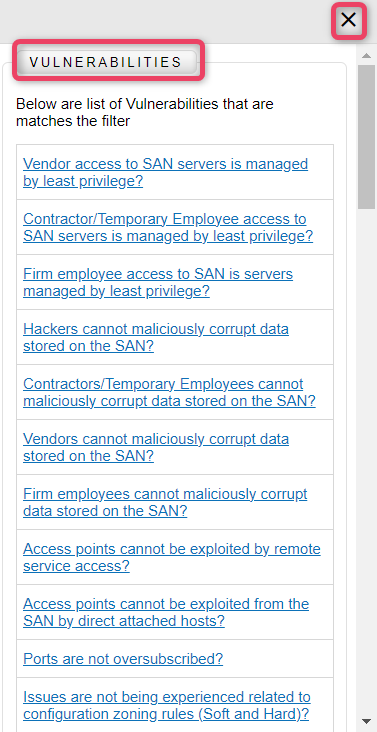 Vulnerabilities button opens a new panel displaying the Vulnerabilities that match the search criteria. Users can search vulnerabilities by selection either or all of the filter options i.e., Low, Medium, High.