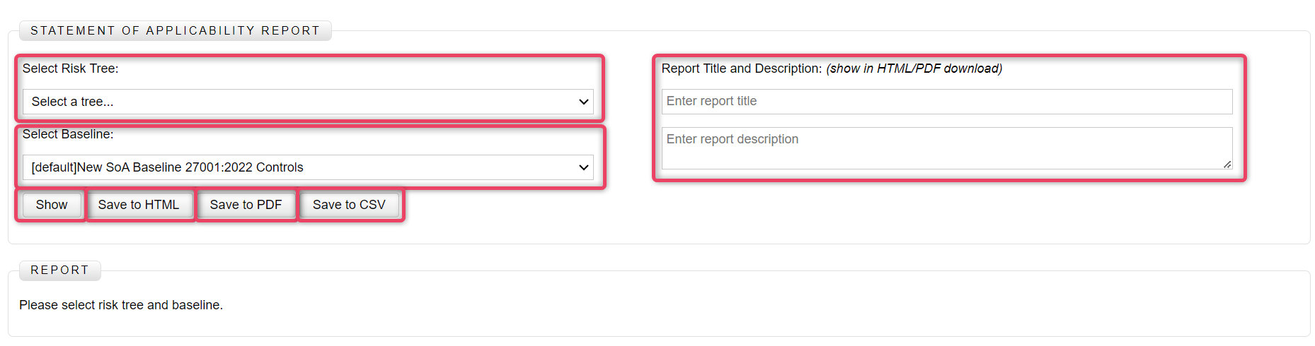 Navigate to Reports and click the Statement of Applicability Report to view the screen as shown below.